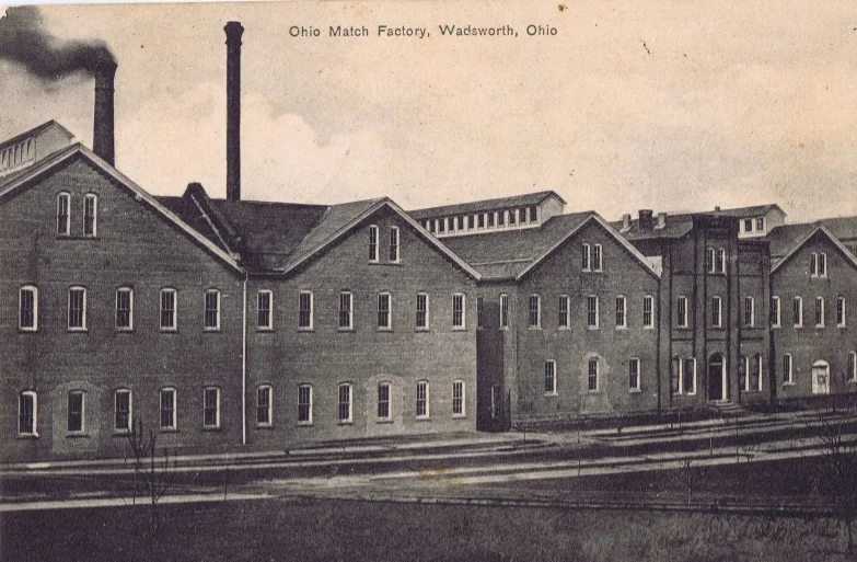 Circa 1895 the original Ohio Match Company Wadsworth, Ohio. Ironically this facility burnt to the ground and had to be rebuilt in 1899.